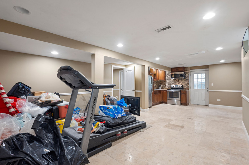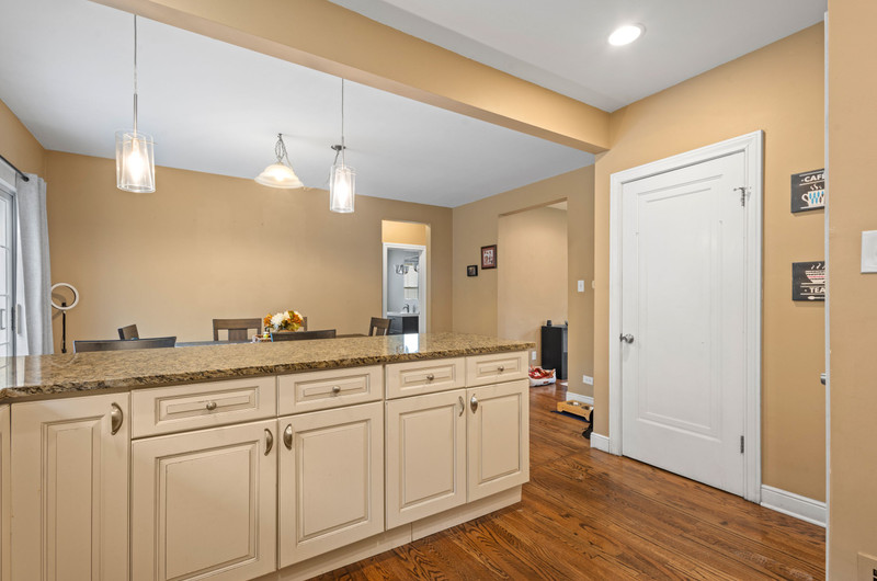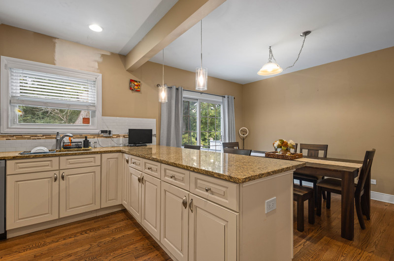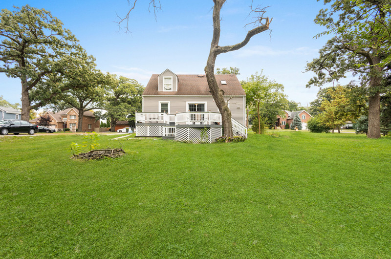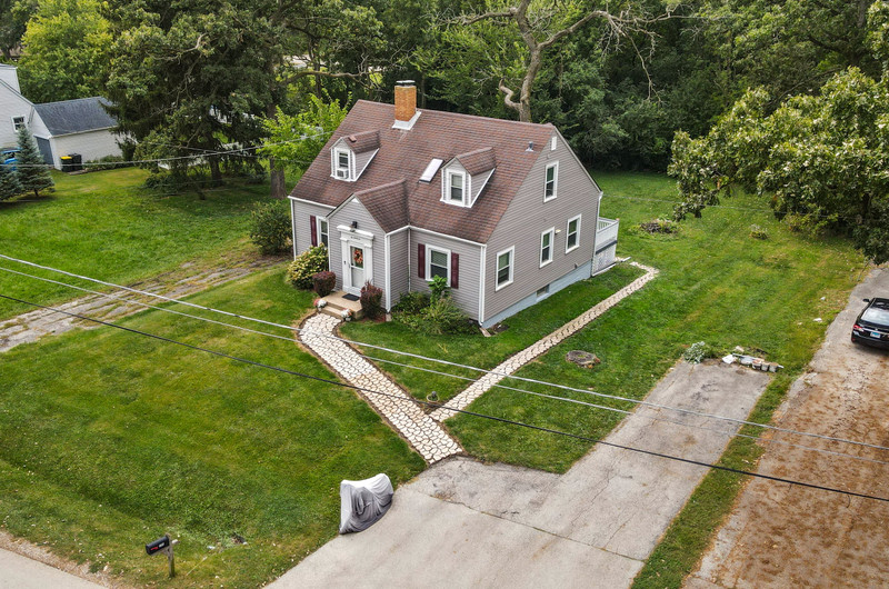 This beautifully updated 4-bedroom, 3 full-bath Cape Cod is a rare find, offering the perfect blend of comfort, style, and convenience. From the moment you step inside, you'll notice the Walnut hardwood floors and the cozy living room with a wood-burning fireplace, creating an inviting space to relax or entertain. The gourmet kitchen features granite countertops, stainless steel appliances, 42" glazed soft-close cabinets, crown molding, and recessed lighting. Two main-floor bedrooms and a full bath provide flexible living options, while the spacious second-floor primary suite includes a sitting area, skylight, and separate full bath with double sinks. An additional bedroom and cozy loft complete the upper level. The finished walkout basement is a true extension of your living space, featuring a full kitchen (2018), recreation area, and a newly converted full bathroom (2018), perfect for entertaining, guests, or related living. Recent updates include a rebuilt deck with all new wood (2024), leaf guard gutters (2020), water heater (2018), and dual sump pumps with one replaced in 2025. Outside, enjoy the large deck overlooking a spacious backyard with a fire pit and mature trees, an ideal setting for gatherings. Conveniently located within walking distance to the Metra, just 10 minutes to the airport, 30 minutes to Chicago, and close to world-class shopping, dining, and entertainment, this home offers the rare combination of modern updates, timeless finishes, and an unbeatable location.